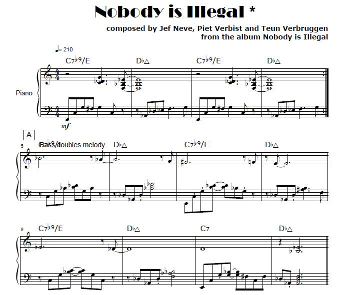 From the album "Nobody is Illegal" released in November 2006, recorded and mixed at Bijloke Gent. Piano trio: piano, double bass, drums